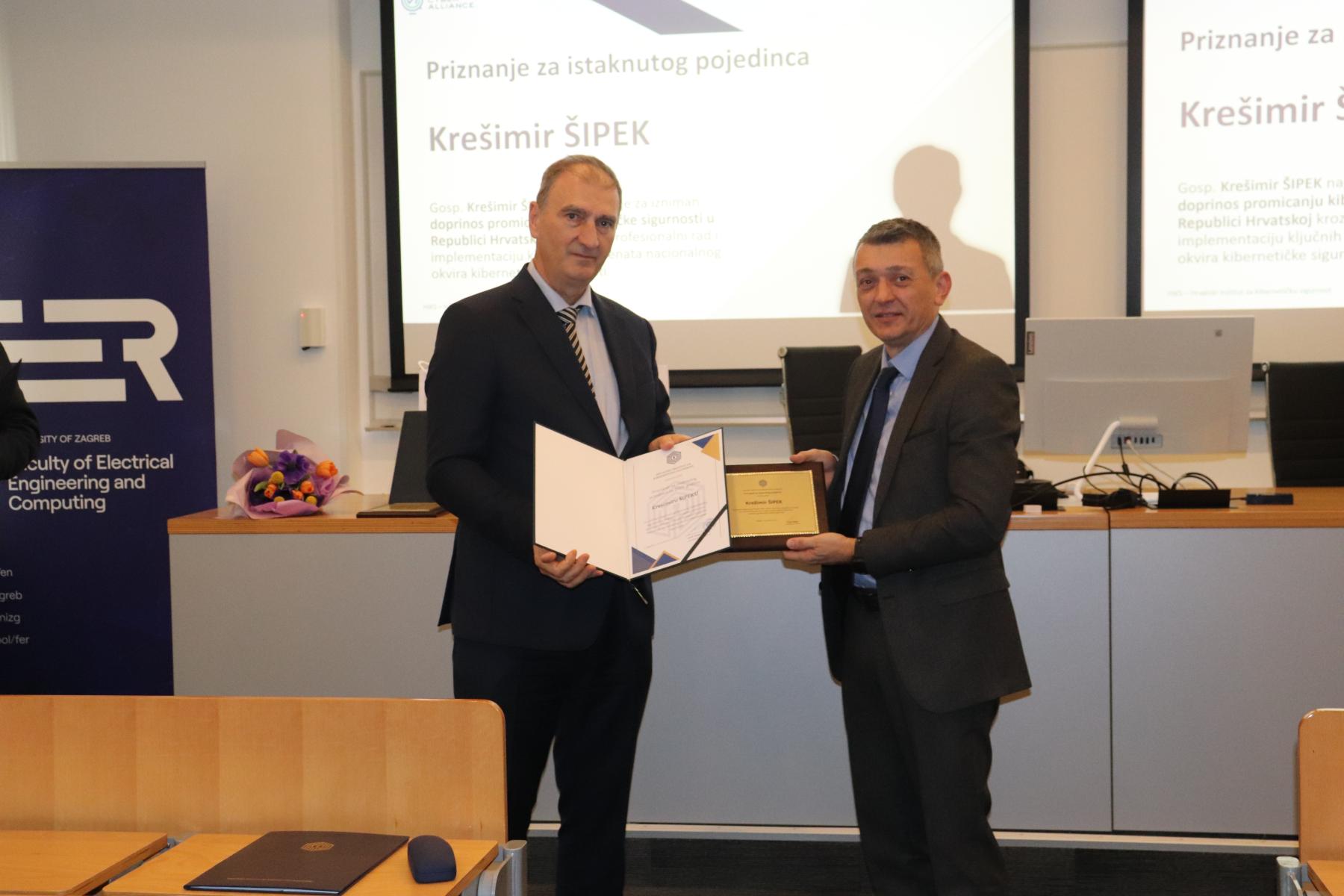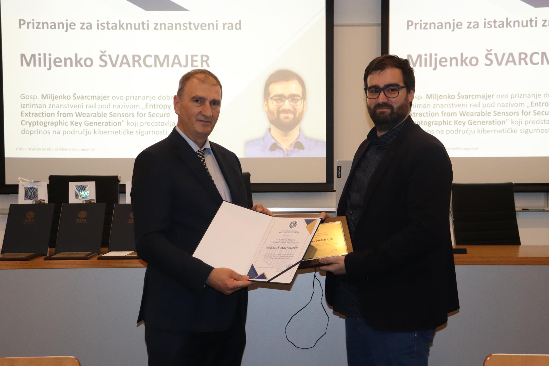 Gosp. Miljenko Švarcmajer ovo priznanje dobiva za svoj izniman znanstveni rad pod nazivom „Entropy Extraction from Wearable Sensors for Secure Cryptographic Key Generation" koji predstavlja zapažen doprinos na području kibernetičke sigurnosti. - Priznanje za istaknutog pojedinca dodijeljeno je gosp. Krešimiru ŠIPEKU, Zavod za sigurnost informacijskih sustava.