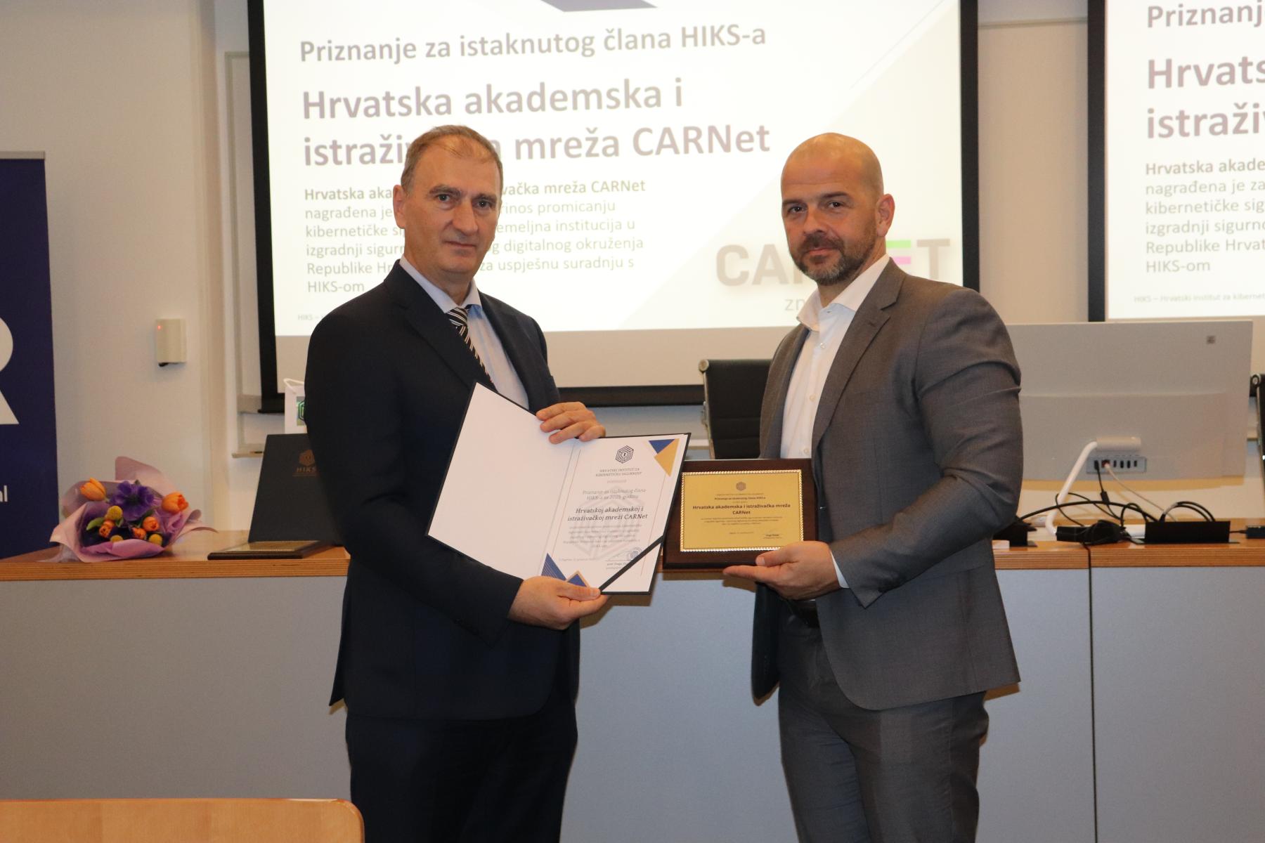 Gosp. Krešimir Šipek nagrađen je za izniman doprinos promicanju kibernetičke sigurnosti u Republici Hrvatskoj kroz svoj profesionalni rad i implementaciju ključnih elemenata nacionalnog okvira kibernetičke sigurnosti. - Priznanje za istaknutog člana HIKS-a dodijeljeno je Hrvatskoj akademskoj i istraživačkoj mreži CARNet.